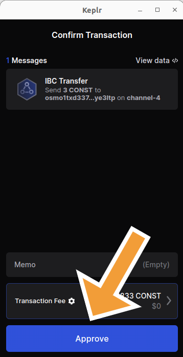 Once you are ready to bridge the tokens, you can confirm the transaction on the Keplr wallet: