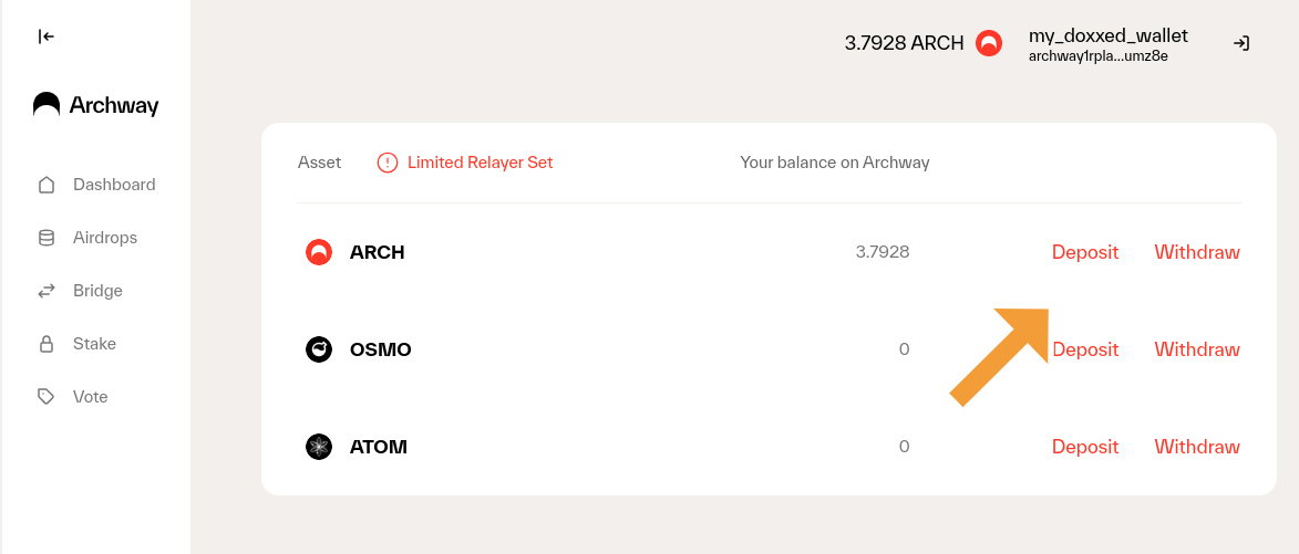 Archway Connect is an effective tool to interact with the Archway protocol, and you can use it to deposit or withdraw tokens across different blockchains by using IBC.