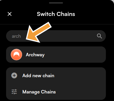 You can switch to the Archway blockchain by clicking on the networks icon.