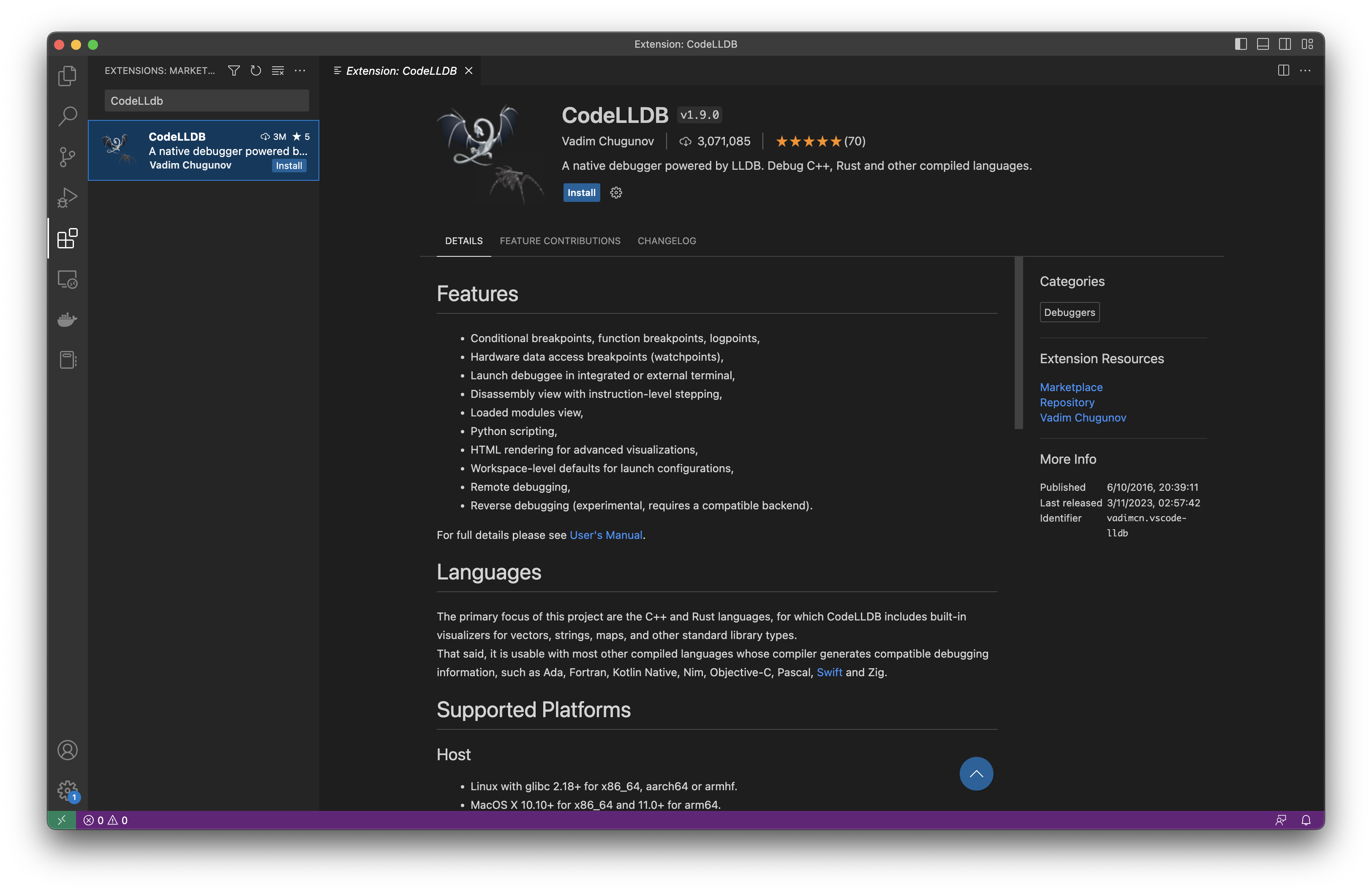 For full details on how to use the CodeLLDB extension, please see the Manual.